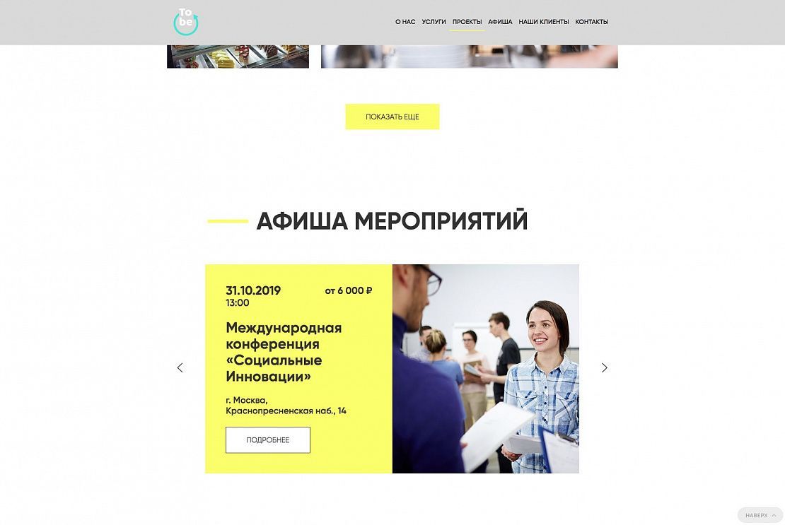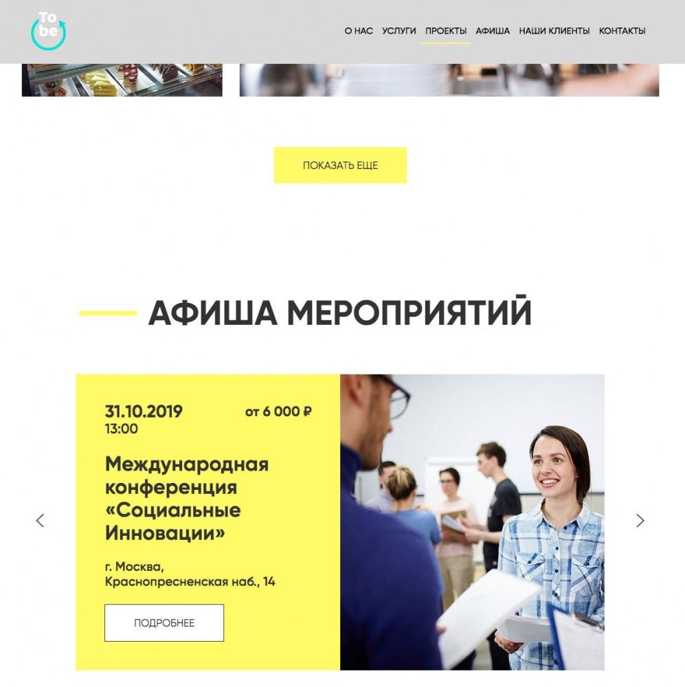 Разработка уникального адаптивного дизайна сайта. Подключение формы обратной связи. Реализация раздела анонсов мероприятий и возможность размещения информации после их проведения.
