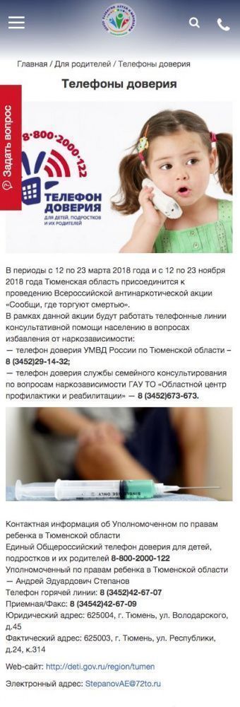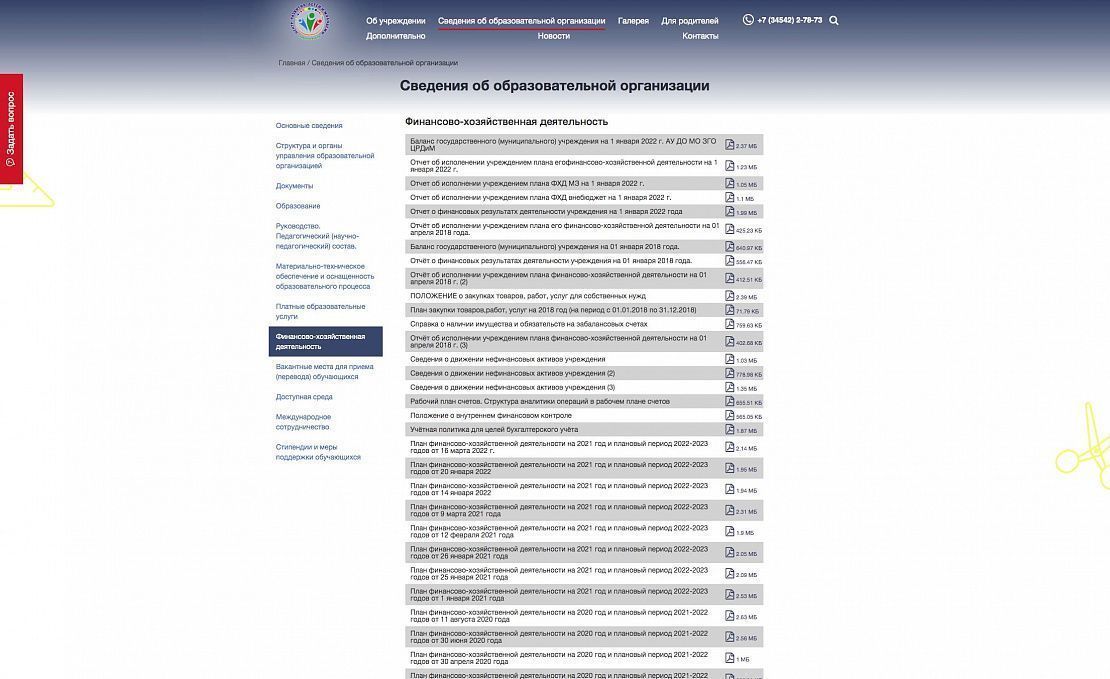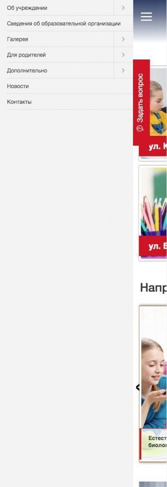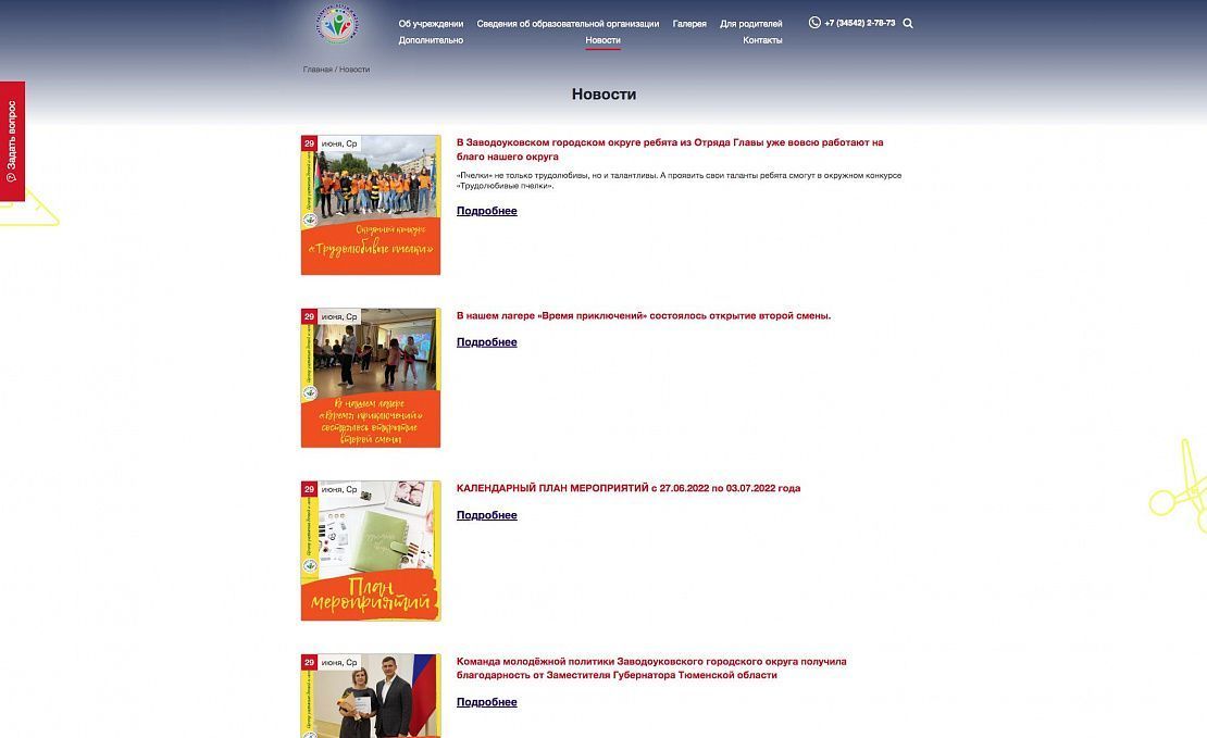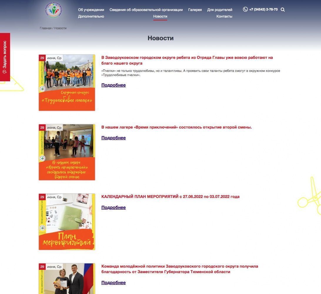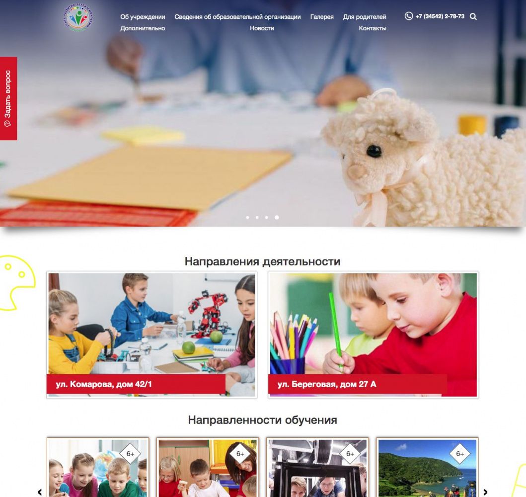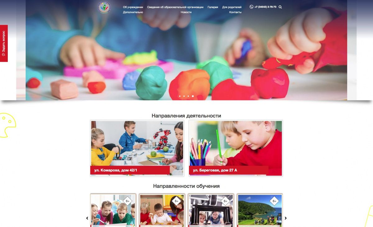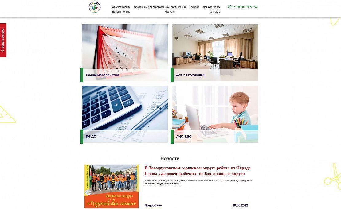 В ходе редизайна выполнена оптимизация информации и размещение в соответствии с требованиями к интернет ресурсу гос. учреждения. В главном меню представлены необходимые разделы для просмотра информации, которая важна для Родителей и детей.