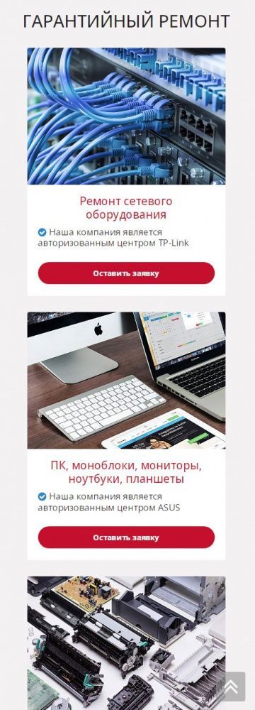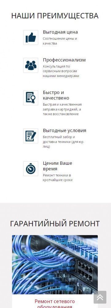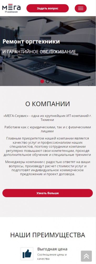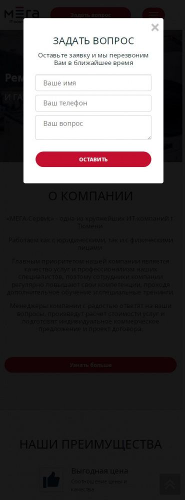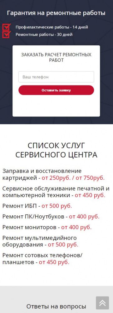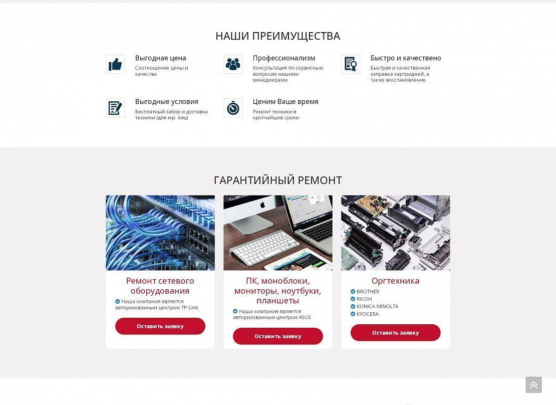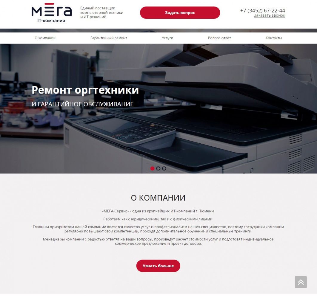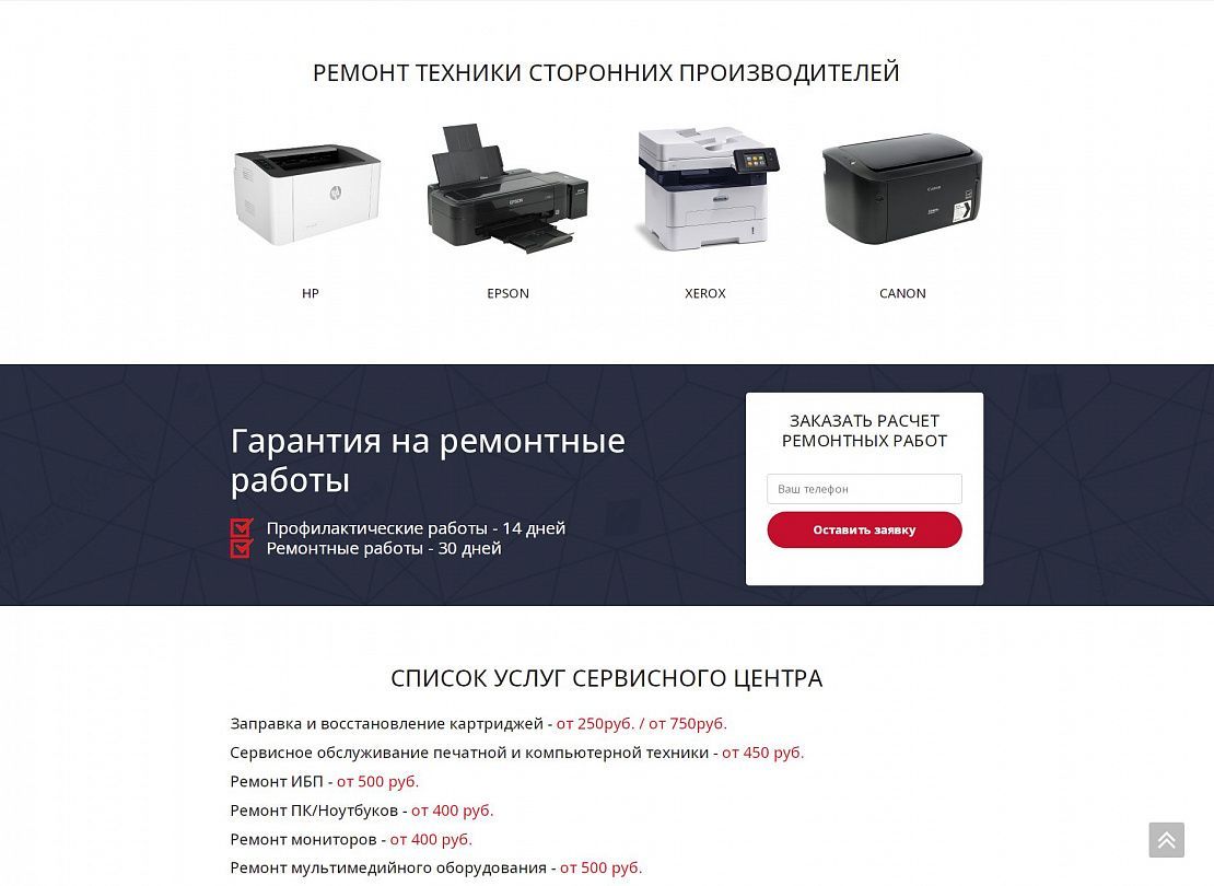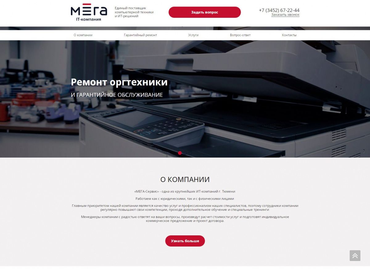 На посадочной странице размещена детальная информация по предоставлению услуг. При заполнении формы связи данные сохраняются в качестве заявки в панели администрирования, а также дублируется на электронную почту компании. При выборе услуги выполняется переход на информационную страницу с детальной информацией о стоимости и сроках предоставления услуги.