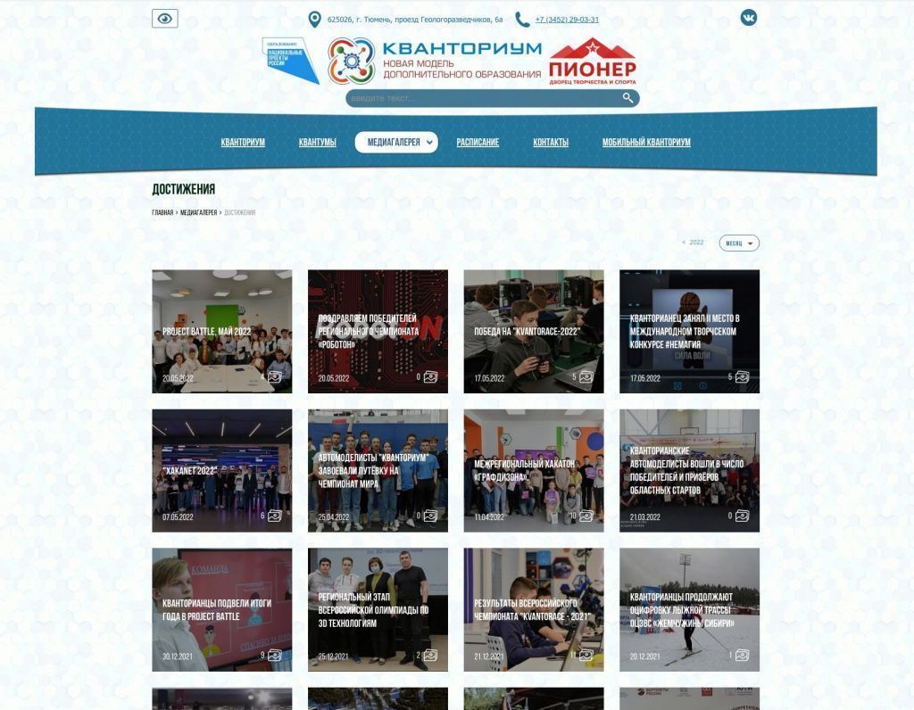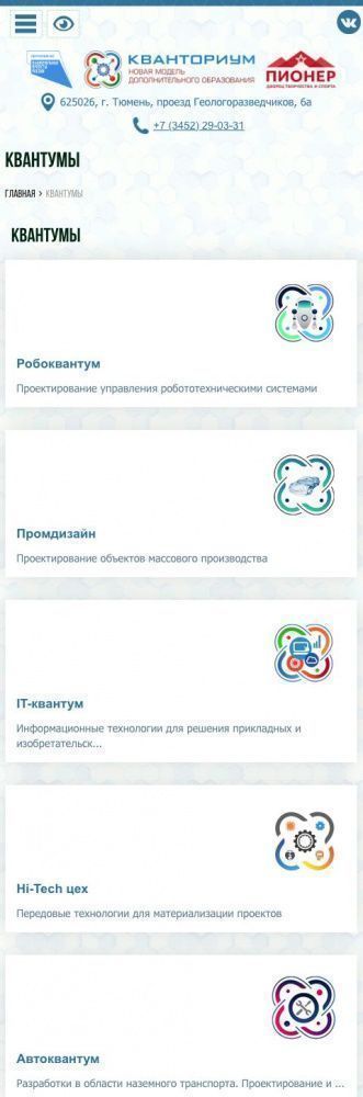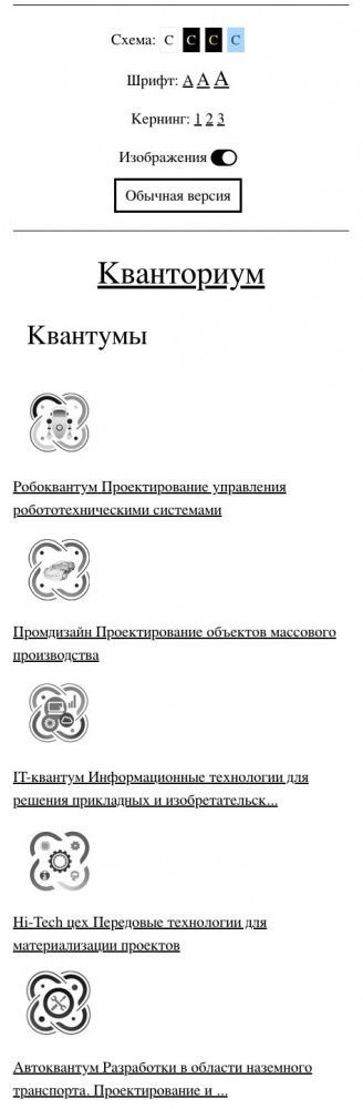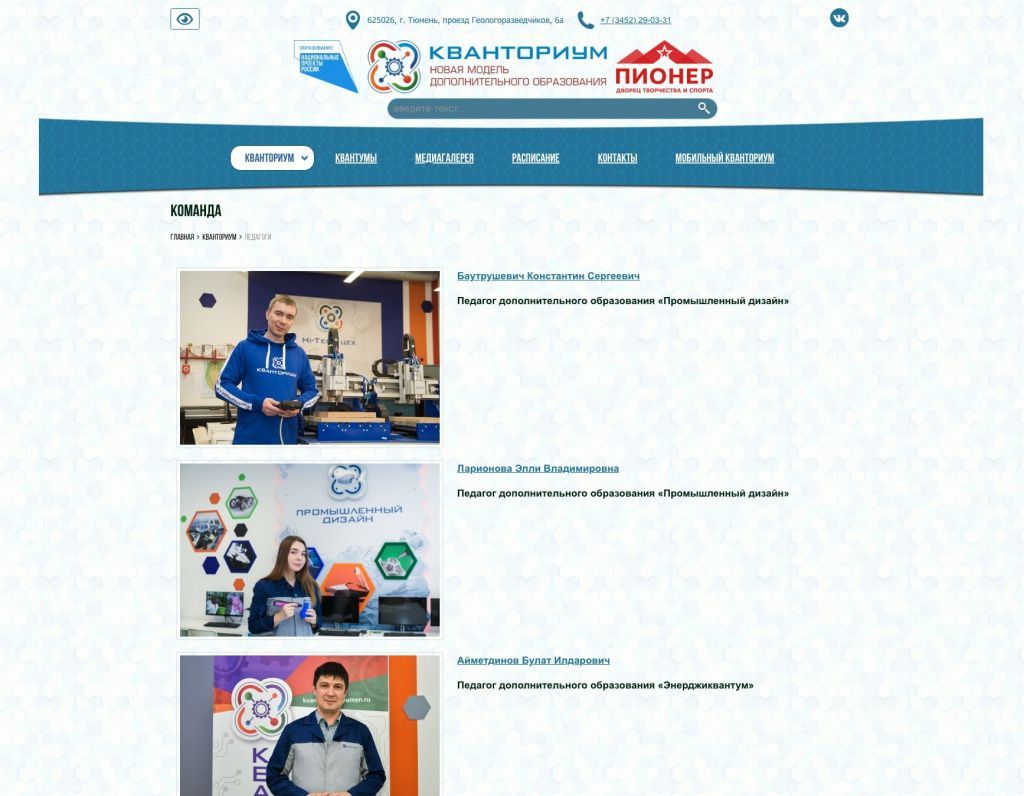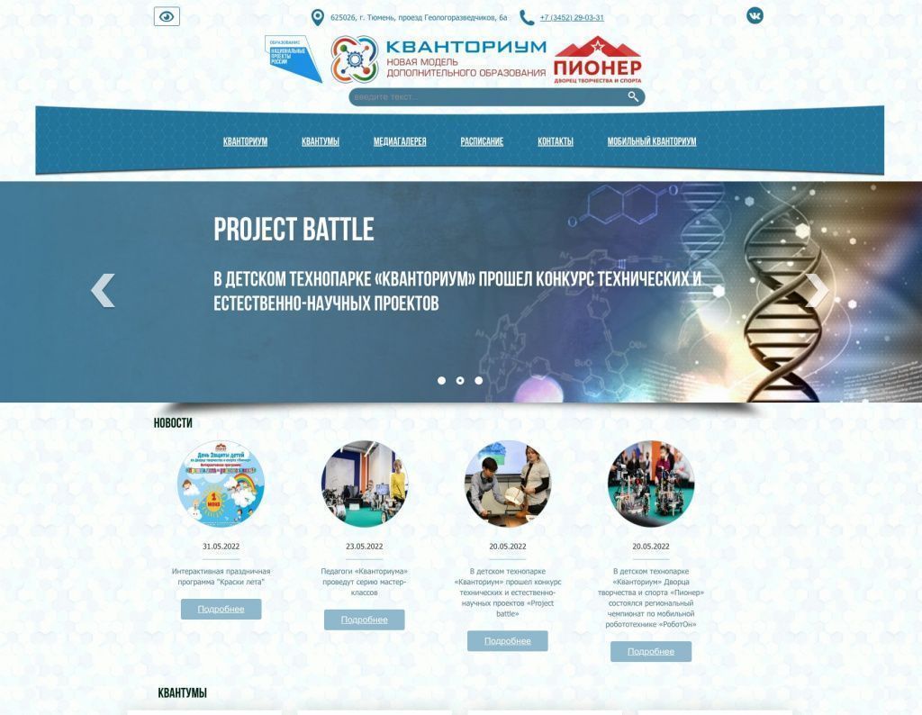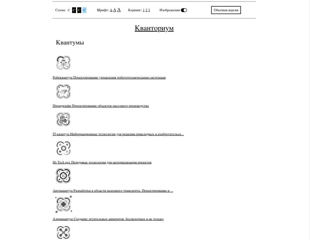 На главной странице акцентировано внимание на новостях и направлениях обучения, где отображается полная информация для будущих учеников. Педагогический состав представлен в полном объеме с текстовой информацией и изображением, чтобы будущие ученики могли заранее знать будущего преподавателя, как говорится, в лицо. Для удобства просмотра сайта создан режим просмотра для слабовидящих.