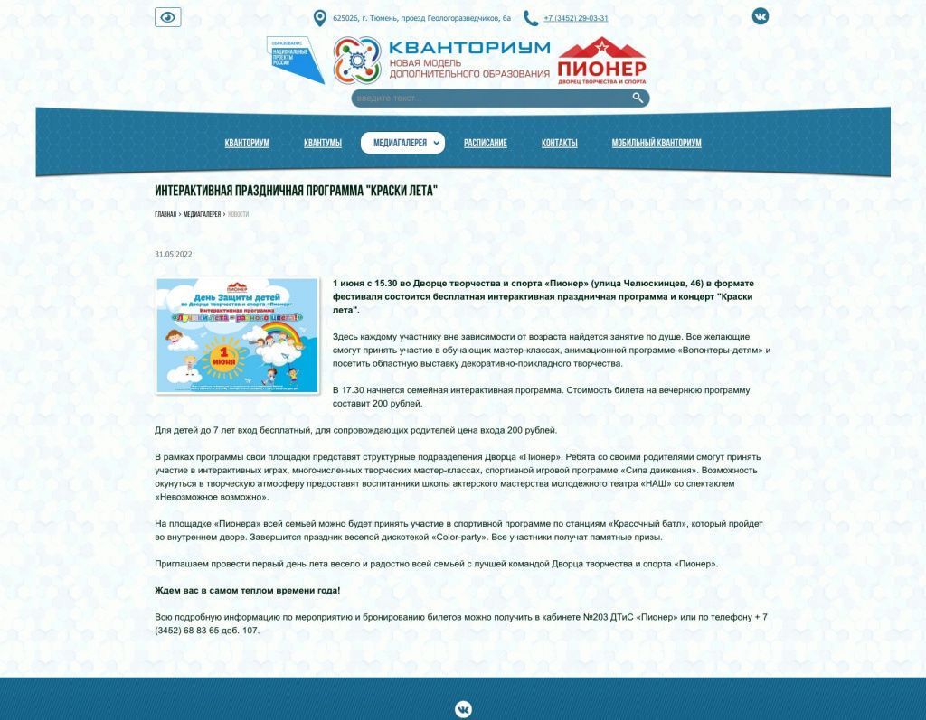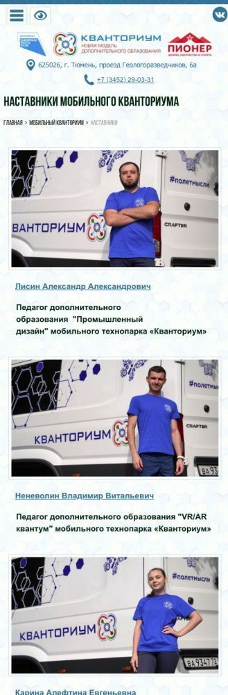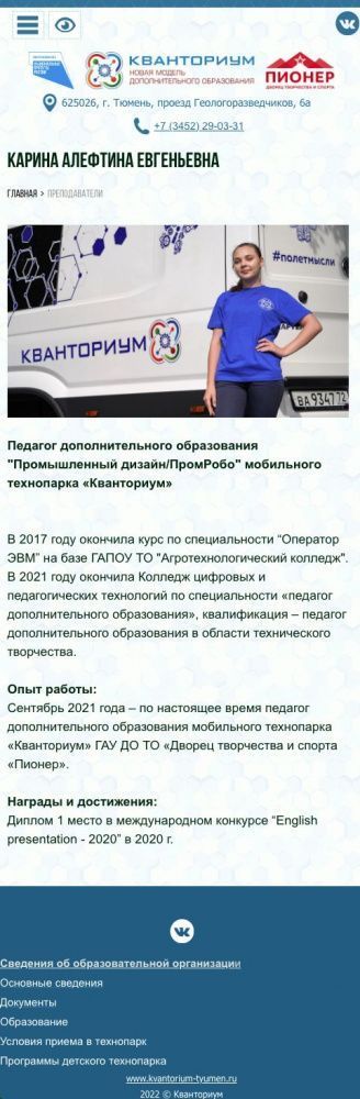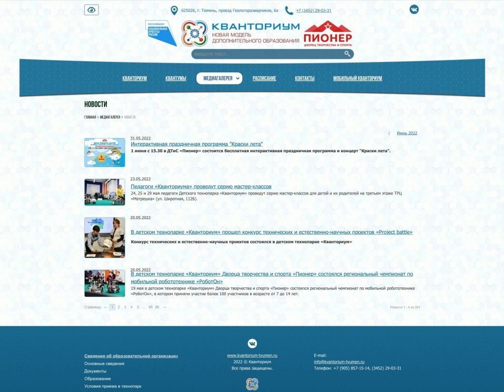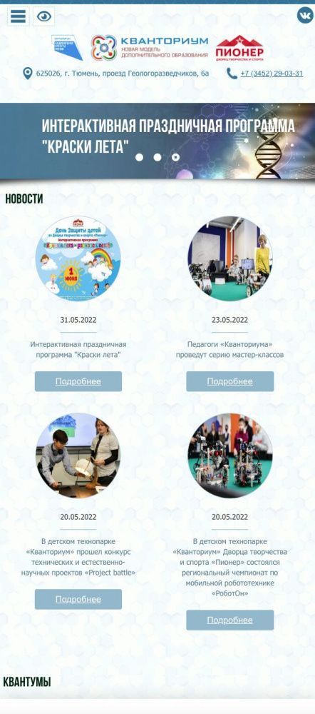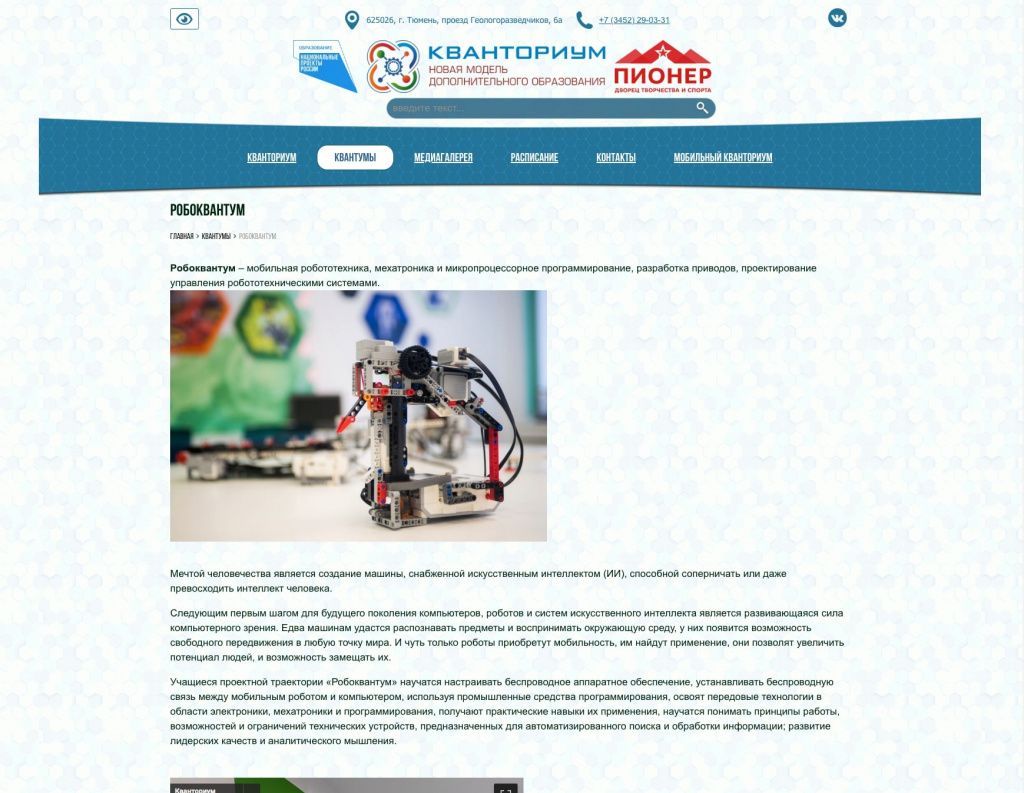На главной странице акцентировано внимание на новостях и направлениях обучения, где отображается полная информация для будущих учеников. Педагогический состав представлен в полном объеме с текстовой информацией и изображением, чтобы будущие ученики могли заранее знать будущего преподавателя, как говорится, в лицо. Для удобства просмотра сайта создан режим просмотра для слабовидящих.