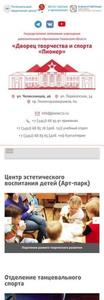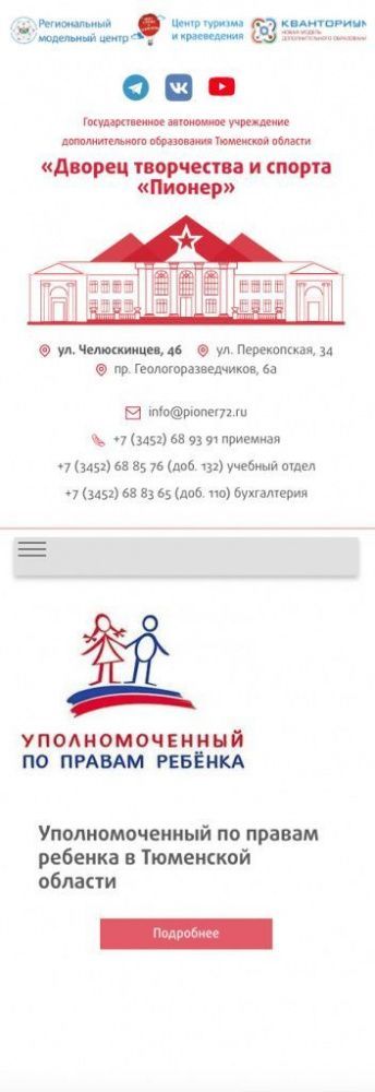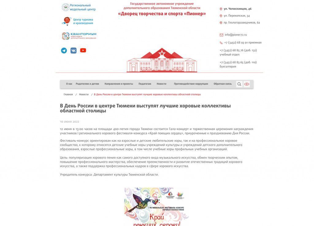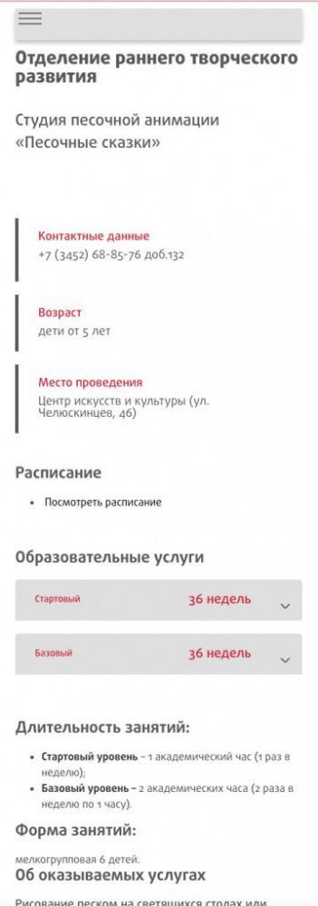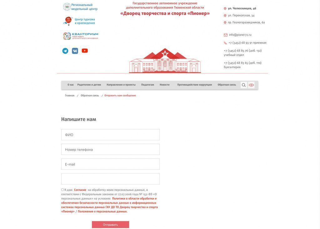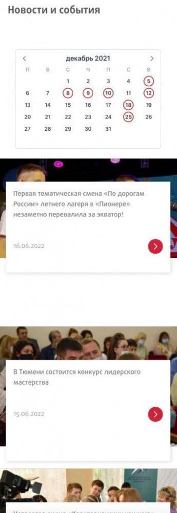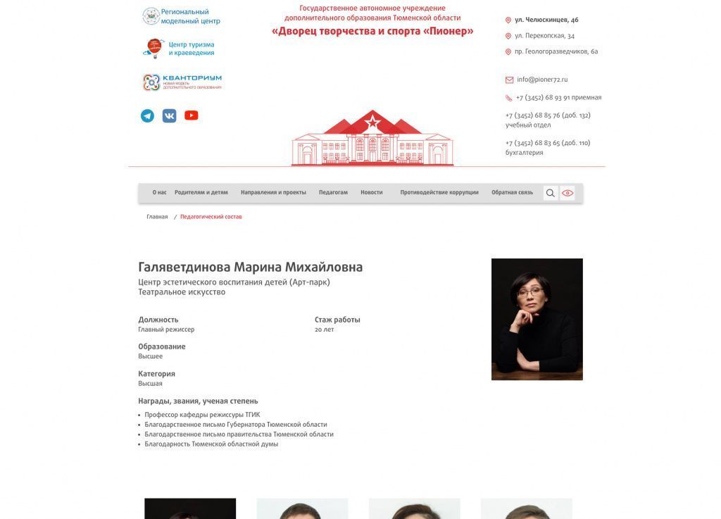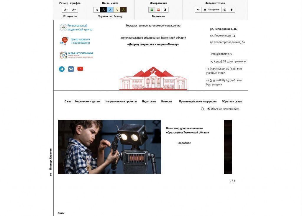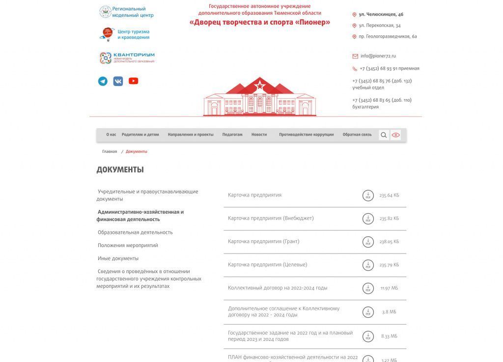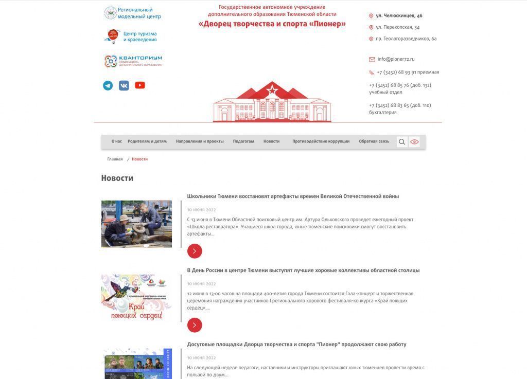 В ходе редизайна важно было акцентировать внимание на мероприятия, которые проводит учреждение. При разработке сайта на главной странице был размещен календарь, внутри которого можно разместить неограниченное количество мероприятий. Дата, в которую назначено какое-либо мероприятие, выделяется красным цветом. При клике на дату видно наименование мероприятия и ссылка для перехода как на внутренний источник, так и на внешний. В разделе документации создана структура в соответствии с требованиями, также в разделах представлены отделения и центры для обучения. В разделе педагогического состава все сотрудники отображаются в соответствии с отделением.